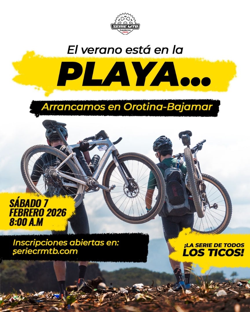 Próximo sábado 7 de febrero es el arranque oficial de la Serie CR MTB 2026 repite una ruta conocida y tradicional del MTB en Costa Rica, desde Orotina, hasta playa Bajamar y regreso, nuevamente como sede el Complejo Deportivo Narime.